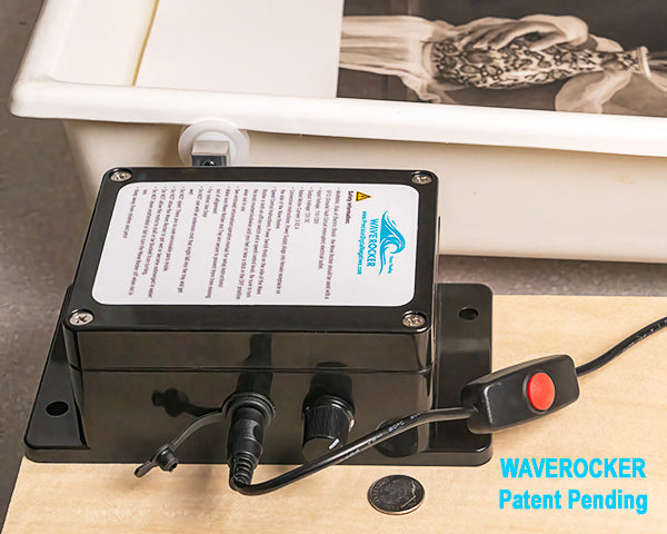 The WAVE ROCKER is a revolutionary, motorized tray rocker designed to automate the tiring tasks of the darkroom. This compact powerhouse frees you from the sink, allowing you to focus on your artwork while ensuring a more consistent, higher-quality development for every print.